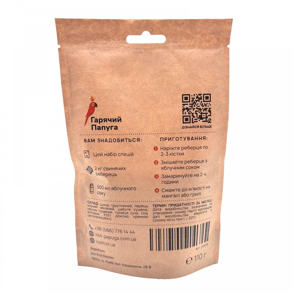 Маринад Гарячий Папуга для грилю зі свинячих реберець в яблучному маринаді (2 кг)