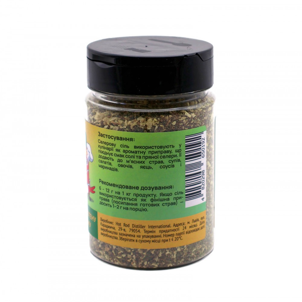 | Склад | морська сіль, корінь селери, листя селери, насіння селери, куркума |